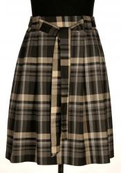 Модель с мякгими складками в круговую из модной ткани в клеточку на подкладе,имеются удобные карманы.