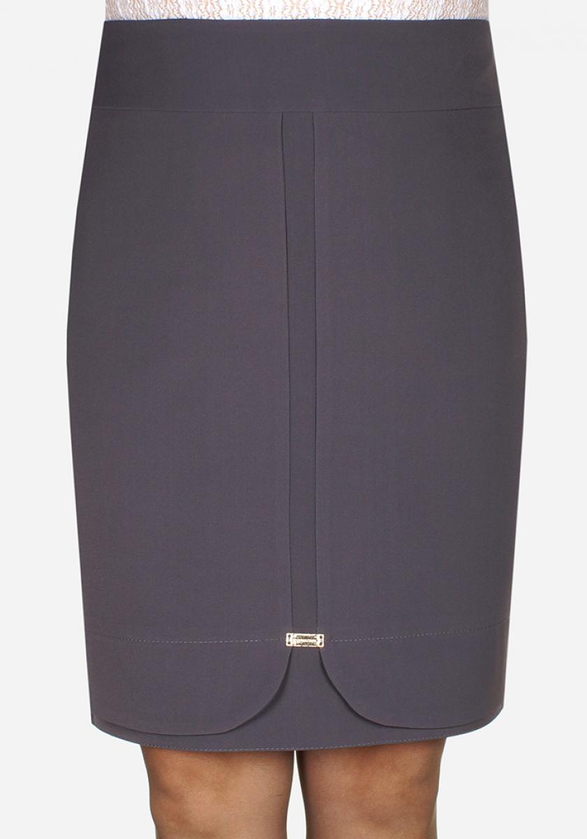 Модель силуэт-карандаш с модным эффектом двойной юбки .Застежка на потайную молнию и пошаговая шлица выполнена сзади. Украшена декоративным элементом из метала На подкладе