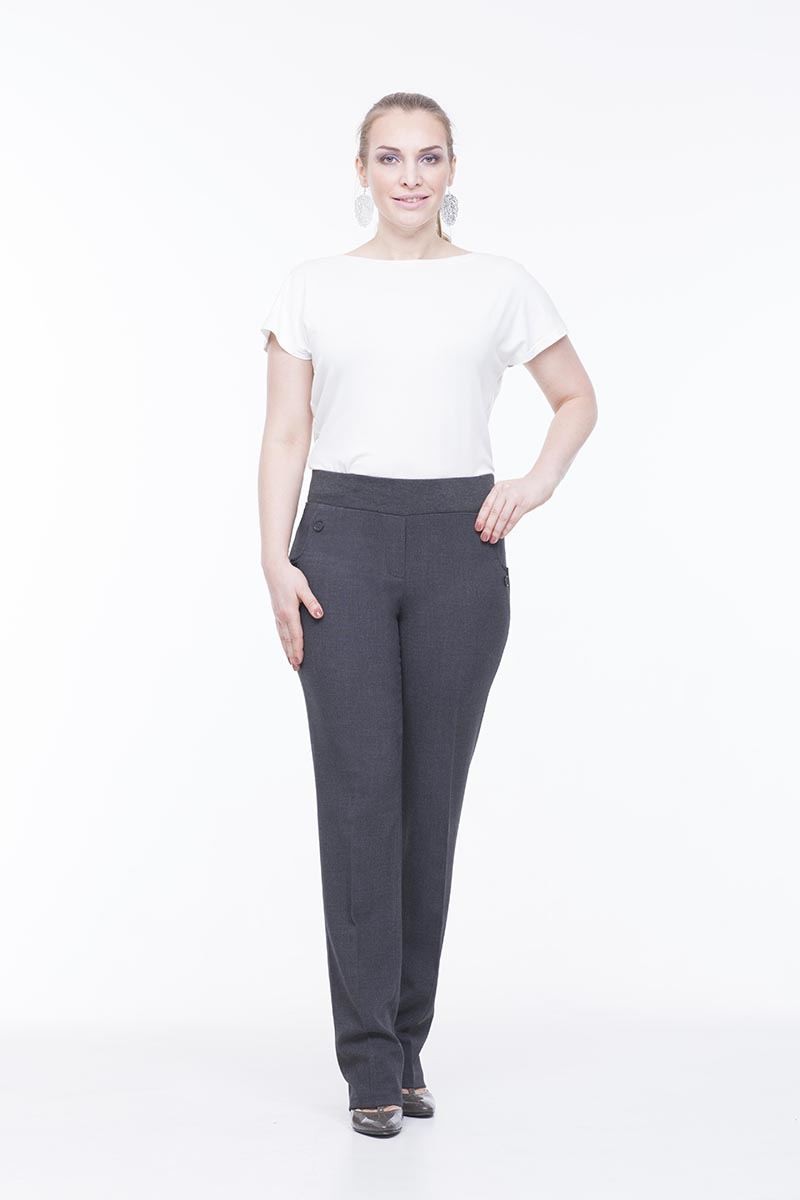 Брюки, слегка зауженные к низу с трикотажным поясом на резинке. Модель с карманами на пуговицах.