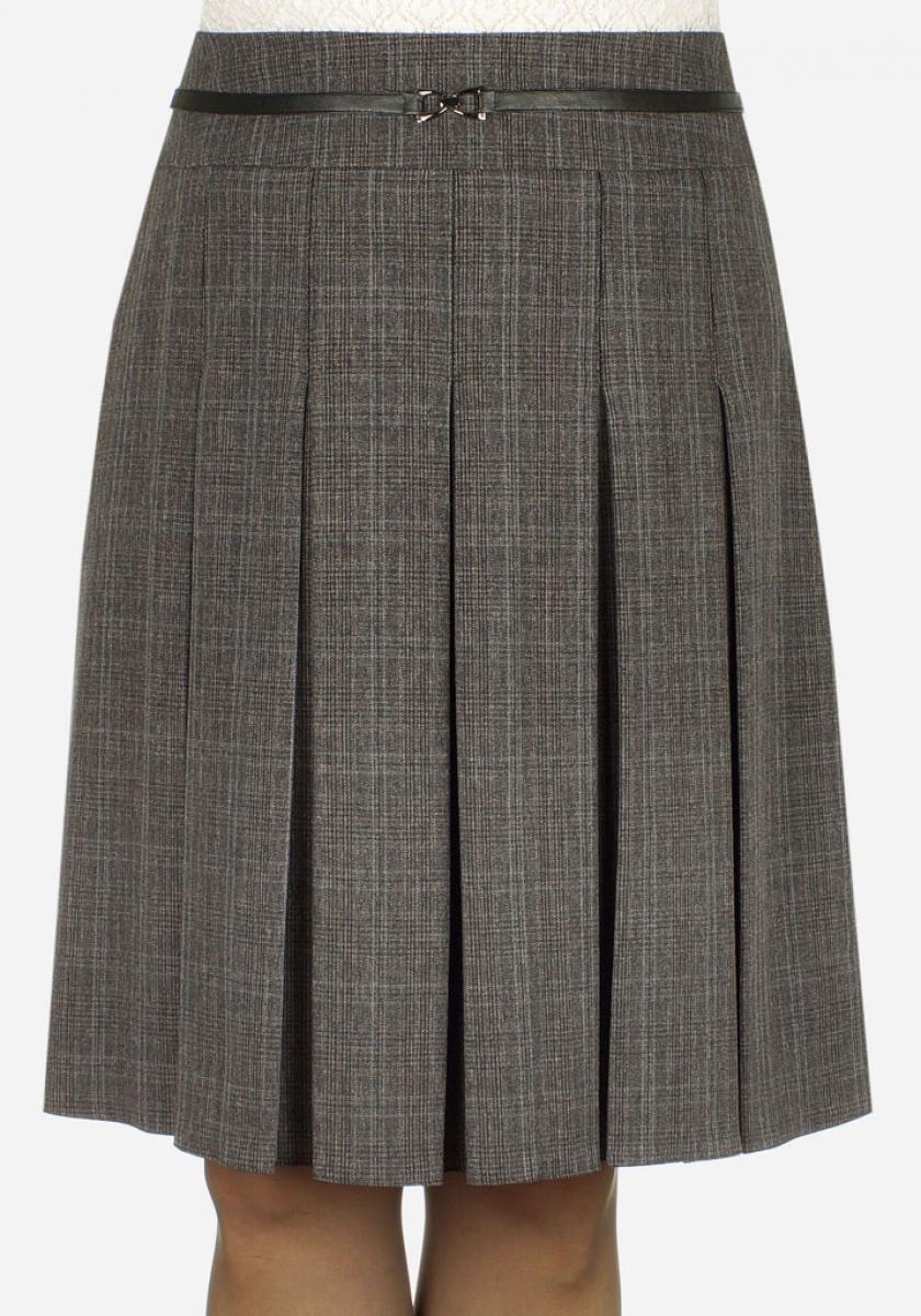 Юбка в круговую складку .На передней кокетке идет отделка ввиде кожаной тесьмы с пряжкой по середине.Замок сбоку.На подкладе.