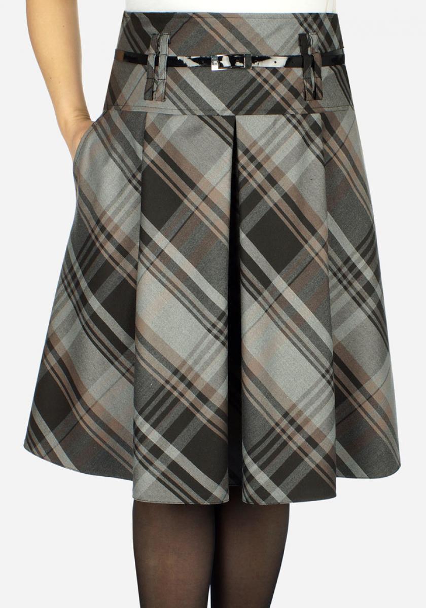 Юбка-колокол из модной клетчатой ткани.Модель с мягкими складками по переду,имеются удобные карманы.Ремни отдельно 80 руб.