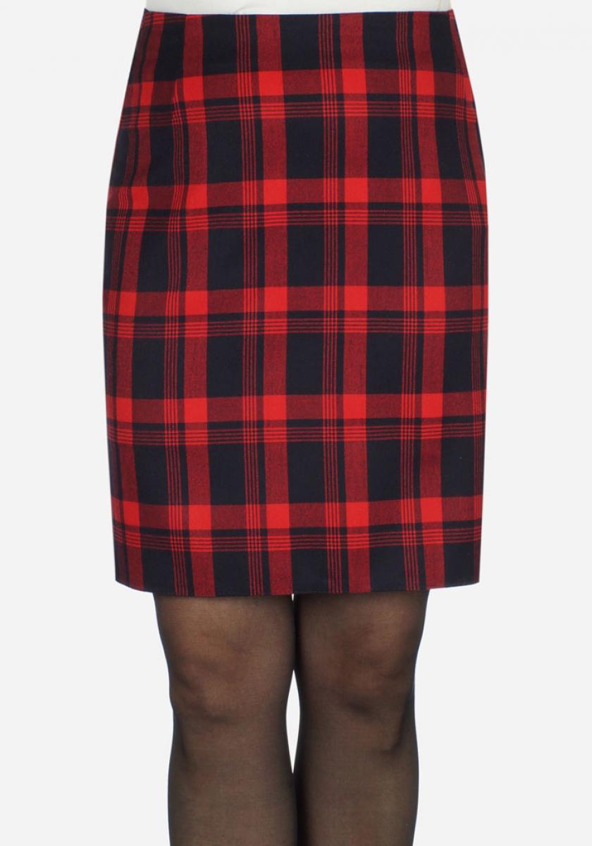 Классическая юбка без пояса из очень модной клетки красного цвета в этом сезоне,сзади шлица. С заниженной линией талии .Что обеспечивает хорошую посадку.С подкладом .