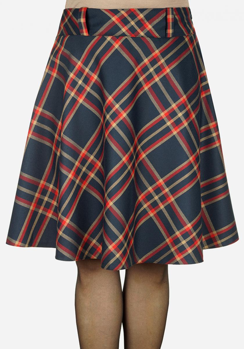 >Юбка полусолнцем из костюмной ткани клетка застежка на молнии.