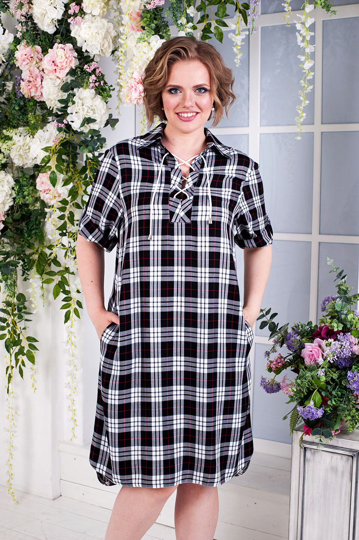 Простое расклешенное платье с прямыми рукавами, шнуровкой в зоне декольте. Одев это платье с кедами, Вы создадите отличный образ в стиле Casual