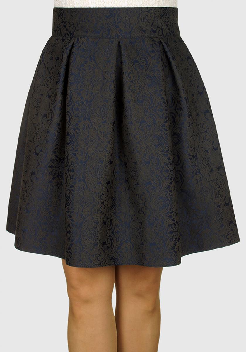 Юбка на широком поясе,без подклада.Бантовые складки идут вкруговую.Юбка сшита из очень модной в этом сезоне жакардовой ткани.