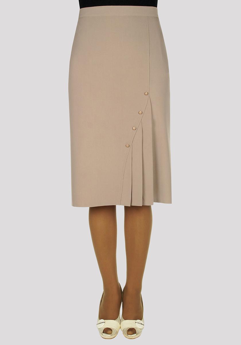 Оригинальная юбка прямого классического кроя .Односторонние складки по переду и разрез по спинке придадут легкость движениям.На подкладе.Застежка на потайную молнию сзади