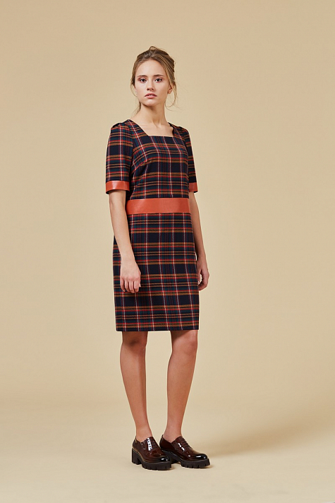 Платье Casual свободного силуэта декорированое эко-кожей. Одевается как с обувью на низком ходу, так и с высоким каблуком.