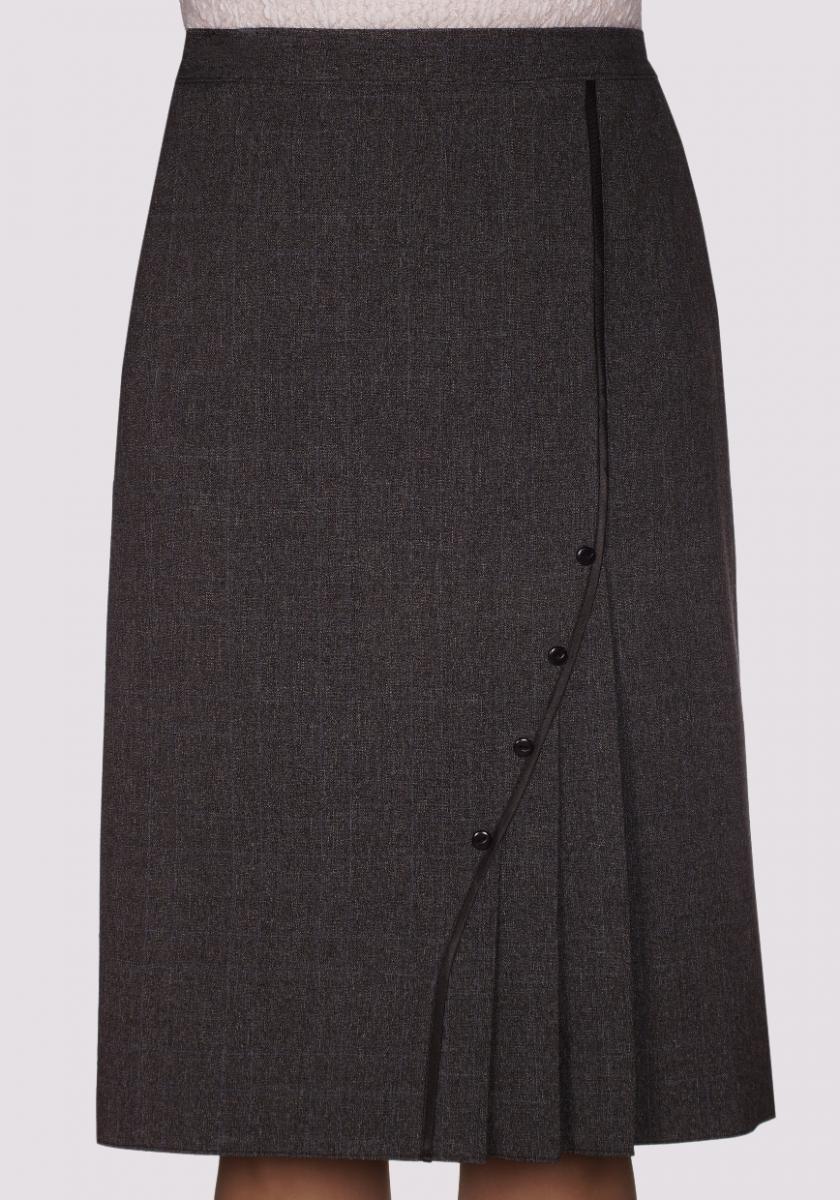 Оригинальная юбка прямого классического кроя .Односторонние складки по переду и разрез по спинке придадут легкость движениям.На подкладе.Застежка на потайную молнию сзади.