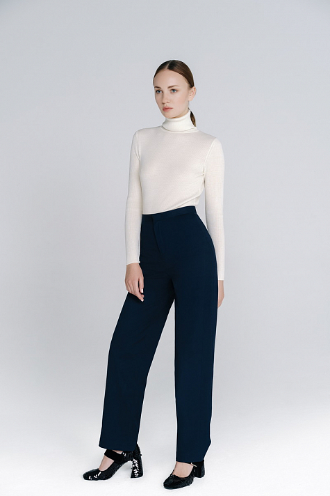 Зауженные брюки с лампасами, посадкой на талии, длиной до щиколотки. Отлично сочетаются с удобными жакетами, легкими блузками или мягкими кардиганами. Обувь лучше всего выбирать на каблуке. Такой ансамбль визуально вытянет ваш силуэт и сделает вас стройнее.
