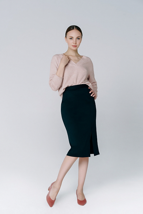 Юбка полуприлегающего силуэта с одним рельефом и разрезом. Выполнена на поясе.