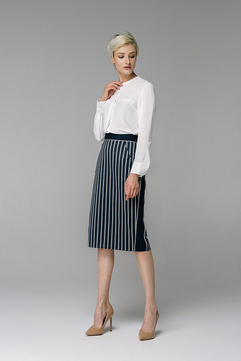 Юбка прилегающего силуэта с поясом, длиной по колено, геометрическими вытачками и рельефами, шлицей в среднем шве спинки. Отличный функциональный вариант как для офиса, так и для досуга. Оригинальный дизайн юбки не останется не за меченым.