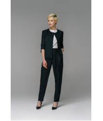 Жакет прямого силуэта с круглой горловиной и рукавами 3/4 с геометричными краями. Стильный жакет выполнен в духе минимализма, отлично подойдет к брюкам, юбкам и платьям из легкой ткани.