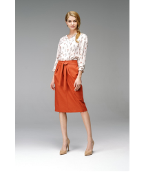 Юбка прямого силуэта с защипами спереди, карманами и поясом. Данная модель станет отличным дополнением как в деловом стиле, так и романтическом.