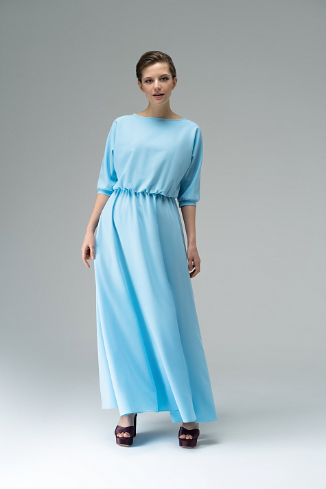 Платье полуприлегающего силуэта с рукавом . Модель с цельнокроеным рукавом и овальным вырезом. Длина рукава 3/4, длина изделия в пол.