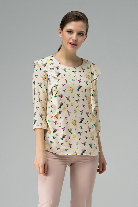 Блуза полуприлегающего с рюшой по вертикальным рельефам.