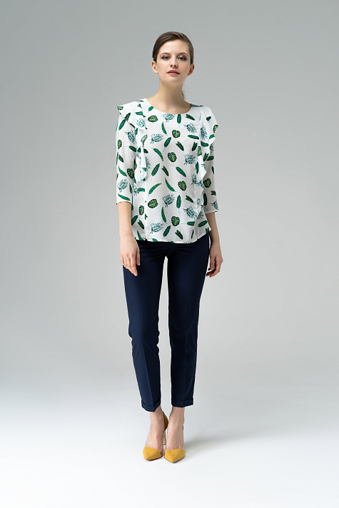 Блуза полуприлегающего с рюшой по вертикальным рельефам.