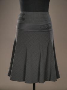 Раслешонная модель из 10 клиньев на интересной кокетке,ваполненной на основе двух конткаснтных по фактуре тканей.На подкладе.