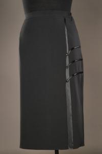 Классическая юбка на подкладе с отделкой атласной тесьмой и стразами.Сзади шлица,на поясе по бокам резинка.