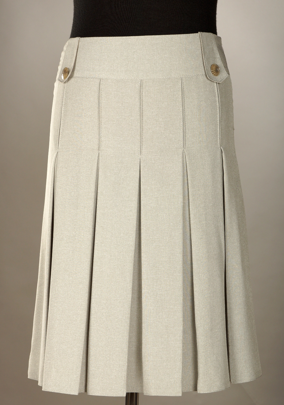 Интересная модель со складками в круговую,на подкладе,никогла не выходит из моды,отделка крупными шлёвками с пуговицами.